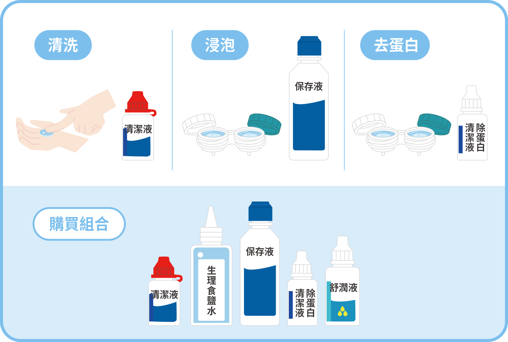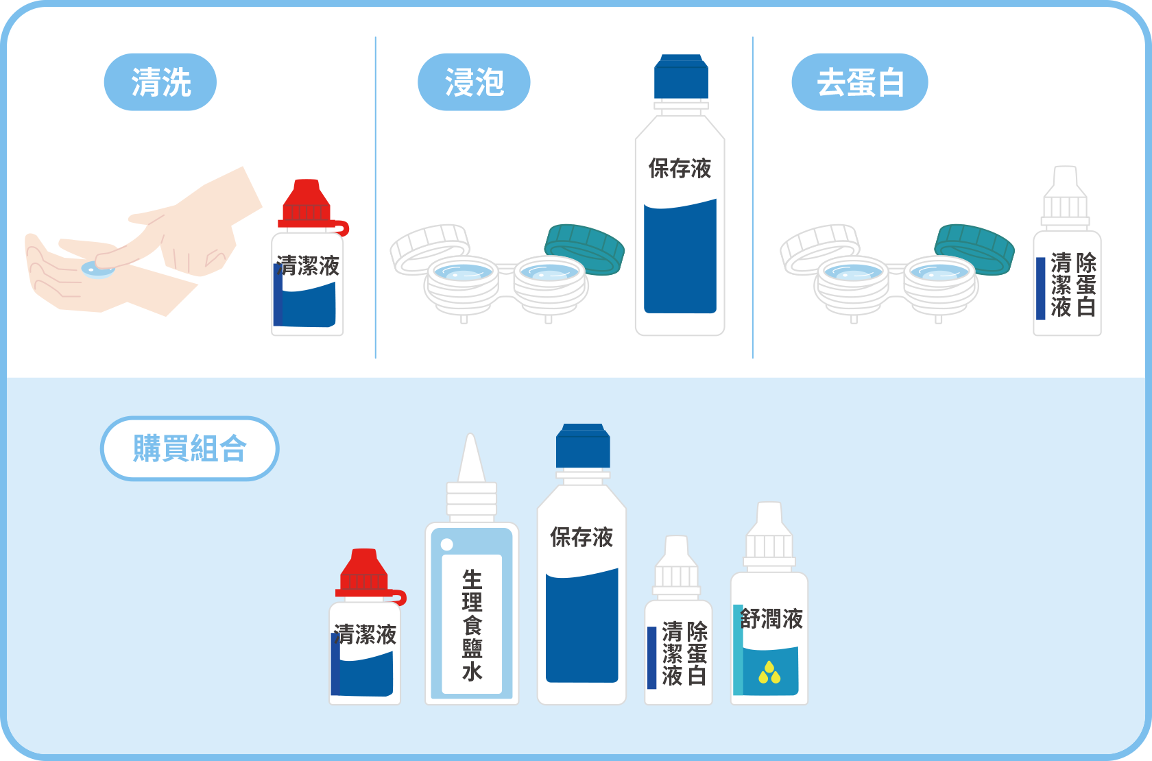 *註:去蛋白程序完成後,請務必在配戴前將鏡片再次搓洗沖淨,避免去蛋白成分直接接觸眼睛。
