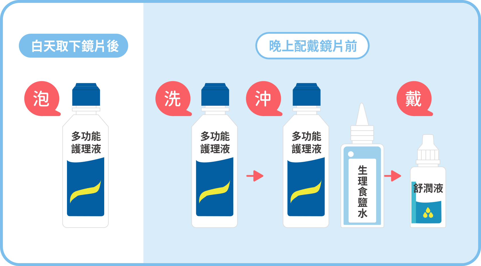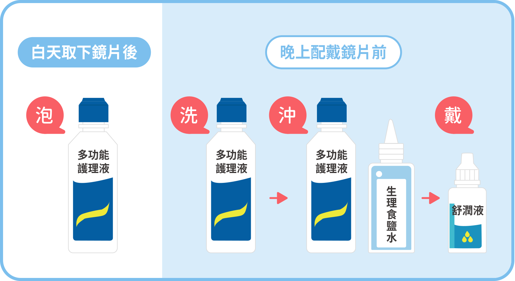大部分多功能藥水都能在鏡片取出後直接配戴!如果眼睛較敏感,擔心會過敏也可以用食鹽水沖洗後再配戴。建議還是在配戴前確認使用說明書,依照產品建議使用!