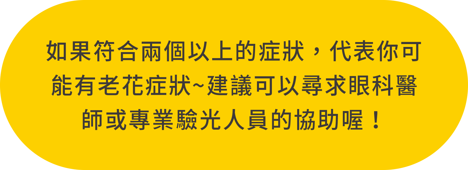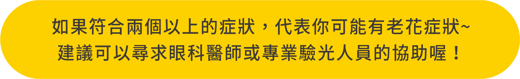 如果發現自己會習慣性把手臂拉長才看得清楚,或是看近需要摘下眼鏡,可能就表示你有老花囉!