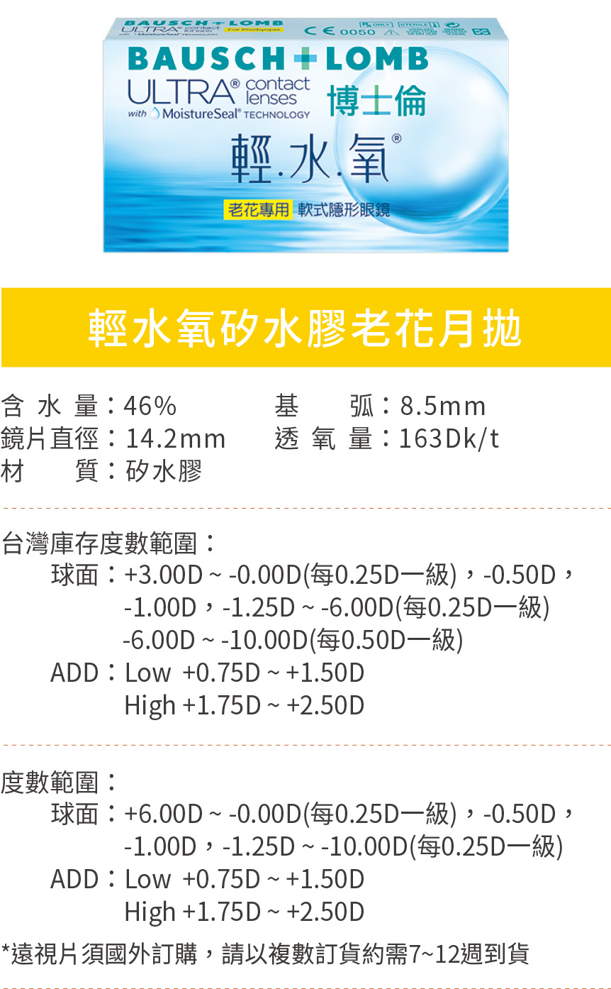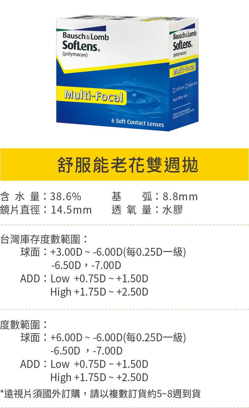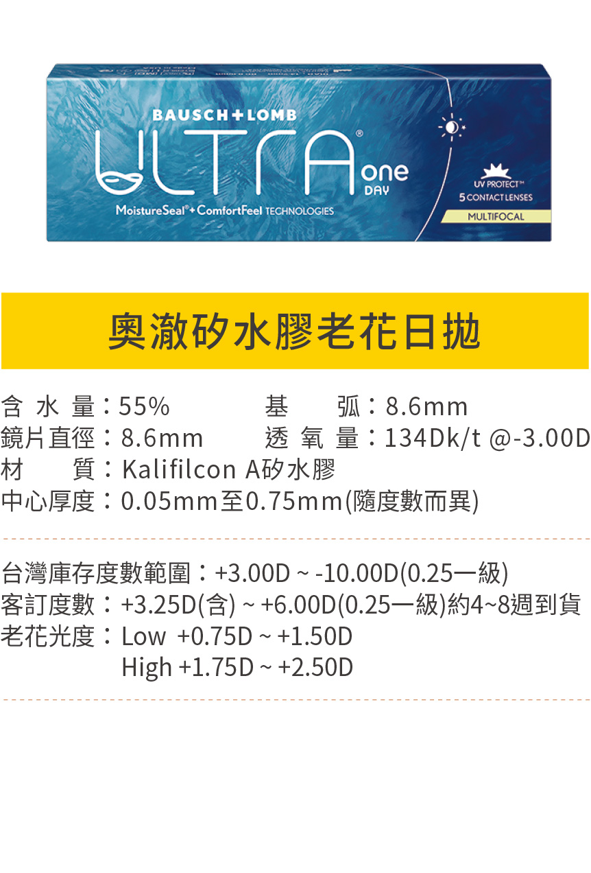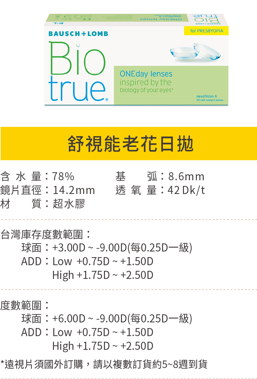 博士倫舒視能老花專用日拋,可以同時矯正遠/近視還有老花,一副搞定!