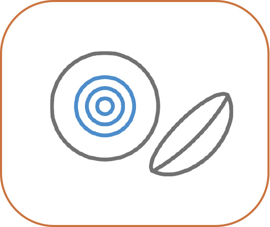 老花專用的多焦點隱形眼鏡將老花的度數製作在鏡片中心,由內到外做漸進式的設計,讓我們的眼睛在看遠看近的時候,瞳孔放大縮小的同時,都可以快速地對焦,不用特別的角度跟姿勢而且也不會有視覺盲區。